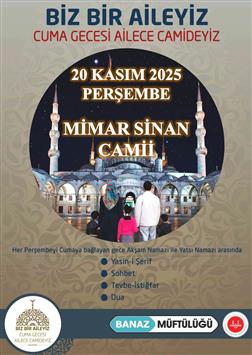 BİZ BİR AİLEYİZ CUMA GECESİ AİLECE CAMİDEYİZ "YATSI NAMAZI BULUŞMASI"