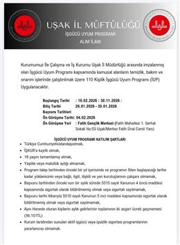 UŞAK İL MÜFTÜLÜĞÜ İŞGÜCÜ UYUM PROGRAMI (İUP) ALIM İLANI