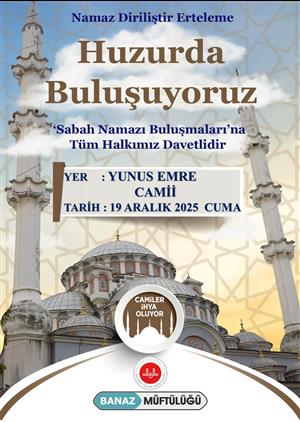 "Huzurda Buluşuyoruz Projesi" kapsamında 19.12.2025 Cuma günü Yunus Emre Cami'nde ikramlı "Sabah Namazı Buluşması" yapıldı.