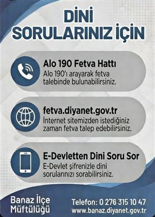 3-E-Devlet üzerinden "Dini Soru Sor" linkini kullanarak sorularınıza cevap alabilirsiniz.