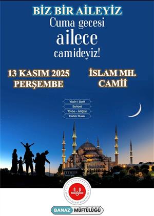 "Ailece Camideyiz Projesi" kapsamında 13.11.2025 Perşembe günü İslam Mahalle Caminde ikramlı "Cuma Gecesi Yatsı Namazı Buluşması" yapıldı